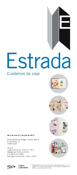 Estrada es una colección-exposición de cuadernos multidisciplinares que indaga con libertad en el concepto del viaje y del propio libro de artista. Se compone de trece piezas artesanales elaboradas por el Taller de Encuadernación Susana y Maestre e intervenidas por Raúl Allén, Marina Anaya, Mª Covadonga Barreiro, Laura Casielles, Sónia Carvalho, Juan Fernández, Antònia G. Tinturé, Jesús Ángel García Vega, Olalla Hernández Ranz, Juan Carlos Mestre, Ana Rodríguez Macías, Raquel Salomón y Thr3hold; así como de una decimocuarta propuesta audiovisual obra de Señor Paraguas.