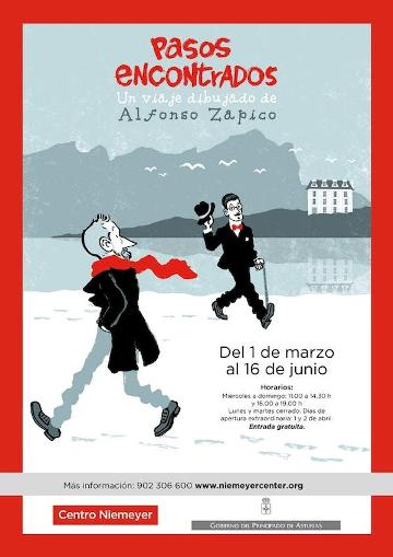 El Centro Niemeyer acaba de inaugurar en la mañana de hoy, 23 de abril, dentro de las actividades para conmemorar el Día Internacional del Libro, la exposición “Pasos Encontrados. Un viaje dibujado” del artista asturiano Alfonso Zapico.