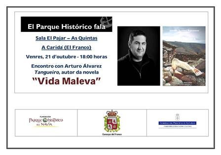 El Parque Histórico Fala vai seguir col programa Lletras y autores. Será el prósimo día 21 d’outubre, ás 6:00 da tarde na sala El Pajar, del complexo cultural As Quintas, na Caridá (El Franco). Nesta ocasión haberá un encontro con Arturo Álvarez Fernández, Tangueiro, autor da novela en gallego-asturiano Vida Maleva, que vai ter oportunidá de presentar y falar sobre ella ás diferentes personas que s’cheguen a esta actividá.