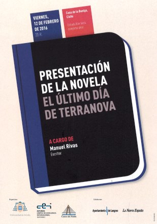 El próximo viernes 12 de febrero, a las 20:00 horas, en la Casa de La Buelga de Ciaño (Langreo) el escritor Manuel Rivas conversará sobre literatura y también presentará su novela El último día de Terranova. Recientemente publicada por la editorial Alfaguara, versa sobre la posguerra y la transición en España a través de la vida en una librería condenada al cierre.