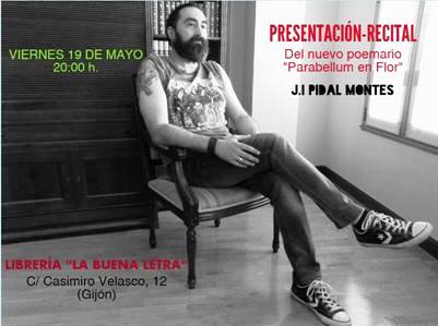 El viernes 19 de mayo a las 20:00 horas el poeta asturiano José Ignacio Pidal Montes presentará en la librería La Buena Letra de Gijón su poemario Parabellum en flor editado por Versos y Trazos.