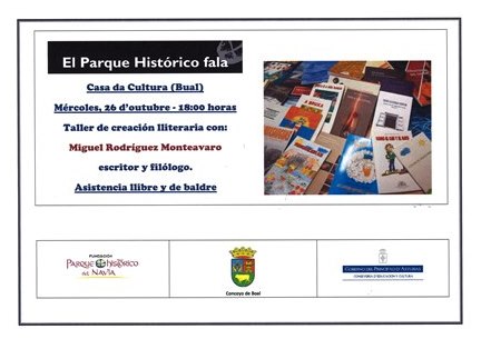 El Parque Histórico Fala vai seguir col programa Lletras y autores. Será el prósimo día 26 d’outubre, ás 6:00 da tarde na Casa da Cultura de Bual. Nesta ocasión haberá un encontro col escritor y filólogo bualés Miguel Rodríguez Monteavaro, quen vai impartir un taller de creación lliteraria ás personas interesadas que s’acheguen hasta Bual.