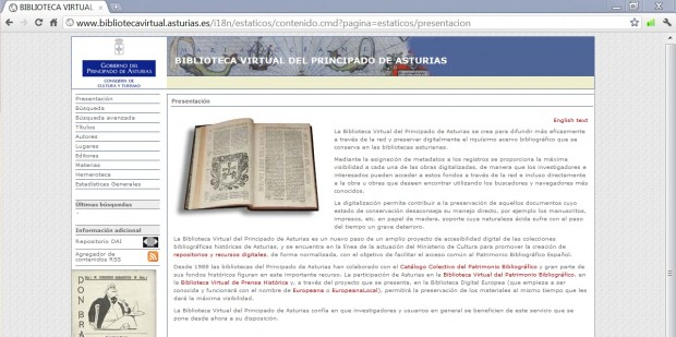 Leer máswww.bibliotecavirtual.asturias.es Hace unas pocas semanas la Consejería de Cultura y Turismo presentó en sociedad la Biblioteca Virtual del Principado de Asturias, un