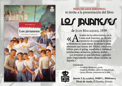 Leer másLa editorial asturiana Hoja de Lata presentará el próximo jueves, 3 de octubre su última publicación, Los javaneses, de Jean Malaquais, en la Biblioteca