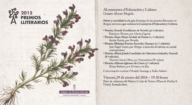 El conseyeru d’Educación y Cultura entrega güei los premios lliterarios en llingua asturiana