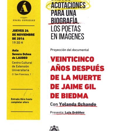 Leer másEl documental Veinticinco años después de la muerte de Jaime Gil de Biedma se proyectará el jueves 24 de noviembre, a las