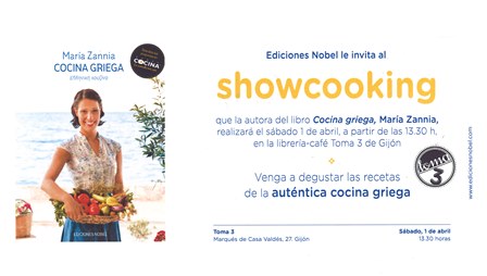 Leer másLa presentadora de Canal Cocina María Zannia realizará un Showcooking y presentará su libro de recetas Cocina griega el sábado 1 de abril, a partir de