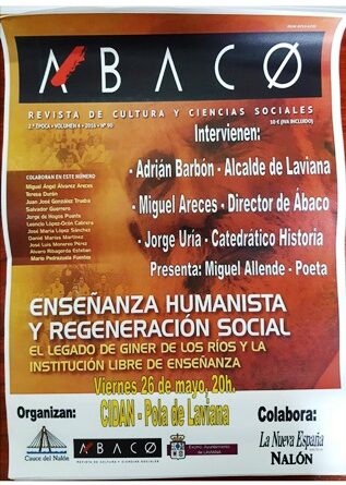 Leer másLa revista Ábaco en colaboración con la Asociación Cauce del Nalón, tienen previsto la presentación del monográfico dedicado a “Enseñanza humanista y Regeneración Social.