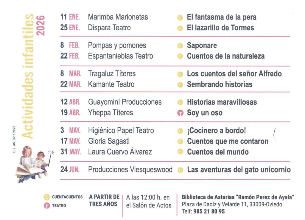 Actividades infantiles en la Biblioteca de Asturias 2026 (I)