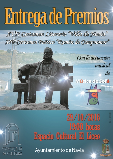 El sábado 29 de octubre se celebrará la entrega de los premios del XVII Certamen Literario Villa de Navia y del XIV Certamen Poético Ramón de Campoamor de 2015.