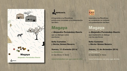 El xueves 11 d’avientu, a les 20:00 hores, la llibrería La Revoltosa de Xixón (C/ Juan Alonso, 12) va acoyer la presentación del poemariu Magaya, editáu por Impronta y del que ye autor Alejandro Fernández-Osorio. Nel actu, va tar acompañáu polos escritores Héctor Gómez Navarro y Sofía Castañón.