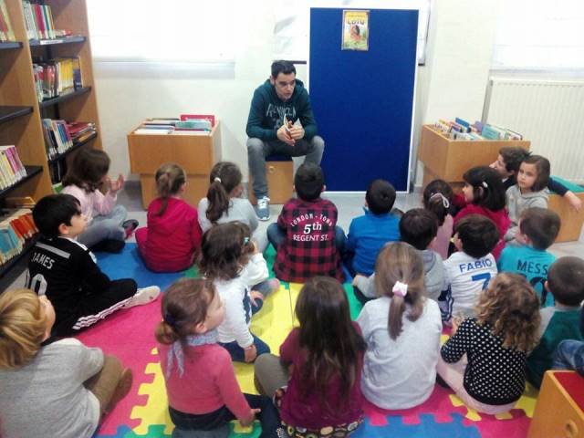 Para los martes de enero se plantea un nuevo enfoque para la hora del cuento, que llamamos: “Cuentos en familia en la biblioteca de Infiesto” pedimos a los padres que participen y sean ellos los que lean los cuentos. La respuesta ha sido tan maravillosa que tenemos voluntarios para todo enero, y para mucho más, por lo menos hasta finales de curso. En enero y febrero hemos contado todos los martes con un padre o madre voluntario para leer y trabajar en las actividades después del cuento, incluso un autor nos vino a leer su cuento y alguna tía y hermano mayor se han apuntado.