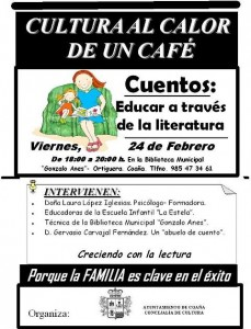 La Biblioteca Municipal “Gonzalo Anes” (Ortiguera-Coaña) desarrollará una nueva tertulia cultural la tarde del viernes 24 de febrero a las 18:00h. Enmarcada en su proyecto Cultura al calor de un café, el tema principal de esta nueva cita será: “Cuentos: educar a través de la literatura”.