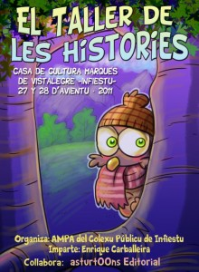 AsturtOOns Editorial pon en marcha esti prósimu martes, 27, y el miércoles, 28, EL TALLER DE LES HISTORIES, una actividá qu’entama la AMPA del Colexu Públicu de L’Infiestu y nel que participarán neños del conceyu piloñés. Nel taller trabayaránse téuniques coles que los participantes podrán, de forma coleutiva, dir desarrollando l’argumentu d’una historia. Tamién se deprenderán dalgunos detalles sobre’l trabayu d’ilustración d’un llibru.