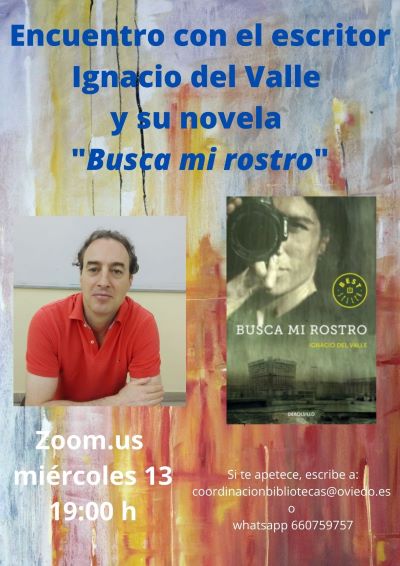 Hoy miércoles a partir de las 19:00 horas y a través de la plataforma Zoom los clubs de Lectura “Lena Rivero” y “Lectura Libre” de la Red Municipal de Bibliotecas de Oviedo tendrán un encuentro con el escritor Ignacio del Valle en torno a su novela Busca mi rostro, que han leído y comentado.