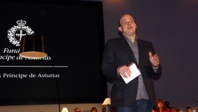 La mayor parte de nuestros lectores ya habrá revisado esas crónicas, visto la retransmisión por la TPA del encuentro o incluso fueron partícipes del mismo. Por ello desde Biblioasturias queríamos aportarles un punto de vista que fuese más allá de la crónica, el conseguido gracias a la colaboración del moderador y presentador del evento, el escritor y periodista asturiano Miguel Barrero, que participó no solo en esa presentación sobre el escenario sino también en el diseño y preparación del acto, y que ahora nos muestra en este artículo su visión de lo sucedido en los momentos previos al saludo sobre el escenario con el flamante Premio de las Letras. Una visión literaria de la otra cara del Encuentro que hemos de agradecerle en nombre de todos nuestros lectores.