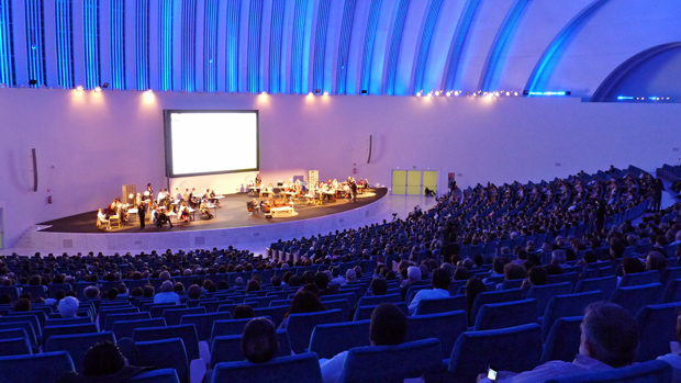 El Palacio de Congresos es un perfecto compendio de los gustos arquitectónicos de su creador, el discutido Santiago Calatrava, y adolece de un afán de grandiosidad que lo aleja irremediablemente de lo humano. El escenario, sobre el que estuve ensayando ayer mismo, resulta tremendamente sobrecogedor: no hay nada en él que conceda un mínimo atisbo de calidez, y desde luego no parece invitar al recogimiento que piden las cuestiones literarias (Antonio lo expresará muy bien unos minutos después, durante el acto: «Lo nuestro es la música de cámara, no los grandes conciertos de rock»), aunque no puede haber queja: su aforo, de más de 2.000 butacas, es el único de Asturias que permite acoger un evento de las dimensiones del que vamos a protagonizar y en el que, según anuncian voces procedentes del interior que desembocan constantemente en el teléfono de Carlos, ya hay más de 1.500 personas aguardando nuestra llegada.