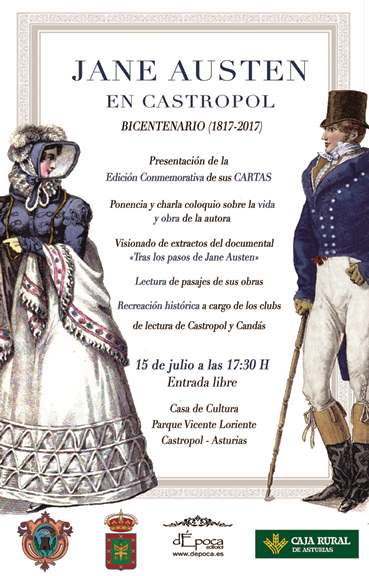 Con motivo del doscientos aniversario de la muerte de la escritora británica Jane Austen la biblioteca “Menéndez Pelayo” de Castropol y la editorial dÉpoca, bajo el patrocinio de la Caja Rural, organizan la actividad “Jane Austen en Castropol” que se celebrará el sábado 15 de julio. En la misma participarán de forma activa los clubes de lectura de las bibliotecas públicas de Castropol y Candás.