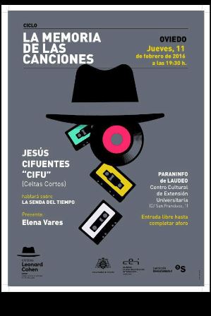 Jesús Cifuentes, “Cifu”, cantante y líder de Celtas Cortos compartirá con el público su canción fetiche La senda del tiempo, la interpretará en versión acústica y abrirá un coloquio con los asistentes. Presenta el acto Elena Vares y la entrada es libre hasta completar el aforo.