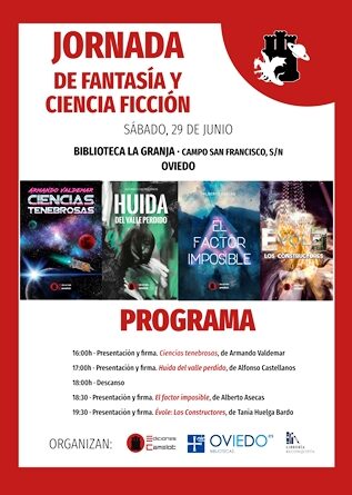 El próximo sábado 29 de junio en la Biblioteca Lorenzo Rodríguez Castellano (La Granja) la editorial Camelot organiza una Jornada de Ciencia Ficción y Fantasía en la que se presentarán las nuevas obras de: