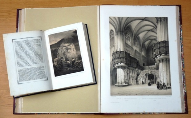 ESCOSURA, Patricio de la. España artística y monumental: vistas y descripciones de los sitios y monumentos más notables de España. Paris, Hauser, 1842-1850 (Imprenta de Fain y Thunot). 3 vols. (99, 91, 103 p., 48, 48, 48 h. de grab. ), 55 cm.