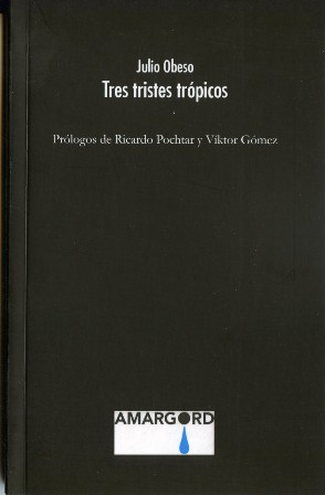 El salón de actos del Antiguo Instituto Jovellanos de Gijón acogerá la presentación, este jueves, 27 de septiembre, a las 20,00 h., del último poemario del gijonés Julio Obeso: Tres tristes trópicos (Ediciones Amargord, 2012). En el acto el propio autor recitará una selección de sus poemas y será presentado por el traductor y poeta argentino Ricardo Pochtar, autor del prólogo del libro, en el que describe la poética de Obeso: