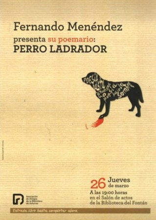 El jueves 26 de marzo, a las 19:00 horas, el Salón de Actos de la Biblioteca de Asturias «Ramón Pérez de Ayala», acogerá la presentación del nuevo poemario de Fernando Menéndez, Perro ladrador de la editorial La Baragaña.