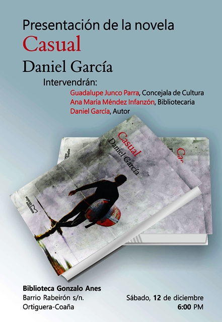Daniel García presentará su libro Casual, editado por la editorial Septem, en la Biblioteca Municipal “Gonzalo Anes” (Ortiguera) el sábado 12 de diciembre a las 18:00 horas.