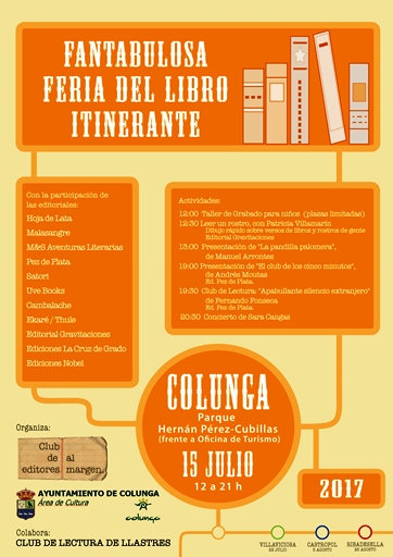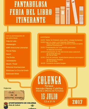 El sábado 15 de julio Colunga acogerá ‘Fantabulosa Feria del Libro Itinerante‘, una iniciativa que surge de la mano del Club de Editores al Margen y de la Concejalía de Cultura de Colunga, con la colaboración del Club de Lectura de Llastres.