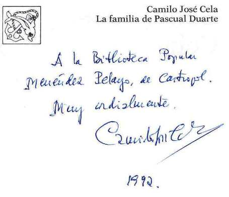 “Para la Biblioteca Menéndez Pelayo de Castropol, con todo afecto”
