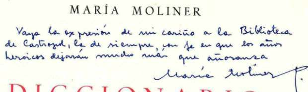 En Castropol esperan que esta sección siga creciendo y alimentando la crónica cultural de un pequeño concejo del occidente asturiano. Tal vez por eso una de las dedicatorias preferidas de Manuela Busto sea la que María Moliner, esa giganta de las letras que ha alumbrado a tantas escritores en castellano, dejó impresa en su Diccionario de uso del español“Vaya la expresión de mi cariño a la Biblioteca de Castropol, la de siempre, con fe en que los años heroicos dejarán mucho más que añoranza”.