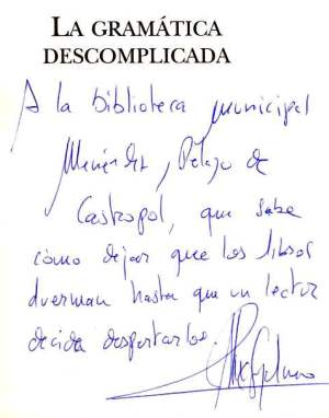 “Para la Biblioteca de Castropol y a todos sus lectores, con todo mi afecto y mis mejores deseos”
