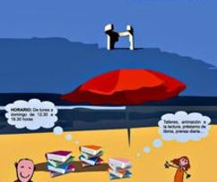 Este servicio implica la instalación de cuatro casetas que conforman un espacio de 56,40 metros cuadrados, con  unas zonas muy diferenciadas: dos áreas de lectura de adultos e infantil con 22 y 20 puestos respectivamente, el rincón del trueque “te lo cambio”, un  punto de información de turismo y la  zona de almacenamiento de libros. Siete monitores, repartidos entre las dos playas, son los encargados de organizar el préstamo de libros y las actividades de animación.