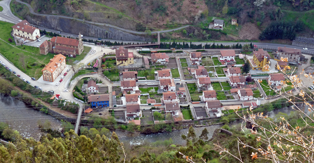 “Así que Bustiello comenzó por el principio y, desde arriba, porque el pueblo se planificó a tres alturas, la más alta para los edificios públicos, en un escalón inferior los chalets de los directivos y en el más bajo las casas de los obreros.” (p.129)