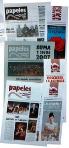 Desde hace 33 años, losPapelescon una periodicidad mensual, han llevado a los usuarios de las infraestructuras culturales avilesinas la programación de actividades y las novedades bibliográficas que venían adquiriendo sus bibliotecas, entre otros temas relacionados. En 1992 se les unieron los suplementos del Palacio Valdés conteniendo la programación del teatro, y más tarde, en 2004, los de los centros culturales del concejo. Un llamado Suma y Sigue se ha venido igualmente editando cada año con carácter de resumen general de toda la actividad cultural desplegada en los diferentes equipamientos.
