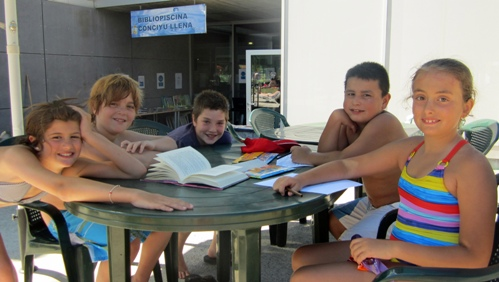La bibliopiscina cuenta con un espacio reservado en el que se realizan distintas actividades de animación a la lectura: cuentacuentos, trabalenguas, talleres de marionetas, caligrafía, crucigramas y manualidades. En él se ofrece también pinturas y dibujos para colorear, con gran demanda entre los más pequeños. Este complemento del servicio con las actividades de animación lectora, sirven sin duda para que los más pequeños no pierdan el contacto con la lectura durante el verano y mantengan su interés en el uso de las bibliotecas.