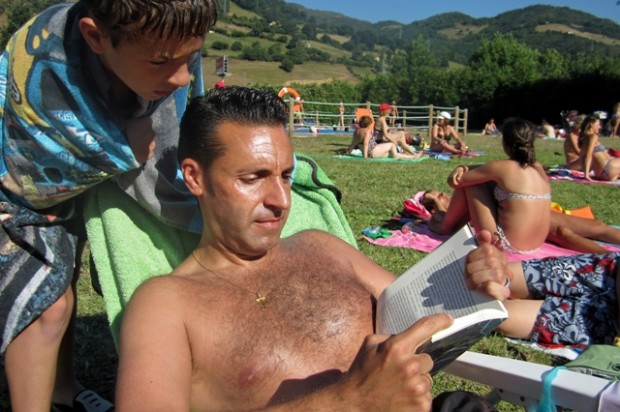 «Es obligatorio leer antes y después de bañarse», «Nadar provoca ganas de leer», “Este verano, un libro por lo menos”… estas son algunas de las sugerentes frases que aparecen en los carteles que se encuentra cualquier visitante del complejo polideportivo de Lena cuando quiere acceder a su piscina. Imposible no verlos, con un tamaño considerable ellos anuncian la presencia de la biblioteca y sus bibliotecarios para ofrecer un servicio que pretende conjugar el baño y la lectura y que desde su puesta en servicio en el año 2000 ya se ha consolidado entre las principales actividades estivales del concejo lenense.