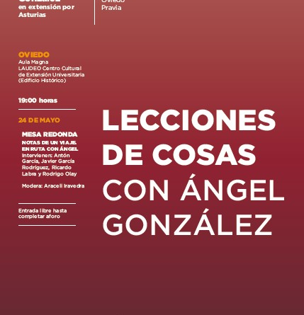 Moderada por Araceli Iravedra, Directora de la Cátedra Ángel González, y bajo un título que se le ha tomado en préstamo al propio poeta, “Notas de un viaje”, los profesores, críticos y escritores que han protagonizado esta ruta hablarán de los múltiples trayectos que pone a disposición de sus lectores la escritura de uno de los autores más representativos de la poesía española contemporánea, a quien la Universidad de Oviedo ha querido rendir tributo con la creación de la Cátedra que lleva su nombre.