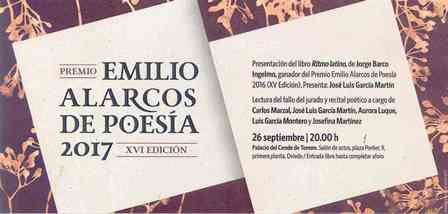 La decimosexta edición del Premio Emilio Alarcos de Poesía, promovido y otorgado por el Gobierno de Asturias, se fallará hoy en un acto que se celebrará en Oviedo y en el que también se presentará la obra ganadora el pasado año: Ritmo latino, del autor salmantino Jorge Barco Ingelmo.