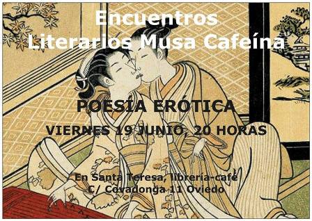 En viernes, 19 de junio, dentro de los Encuentros Literarios Musa Cafeína, tendrá lugar en Santa Teresa Librería Café la última sesión de la temporada, dedicada a la poesía erótica.