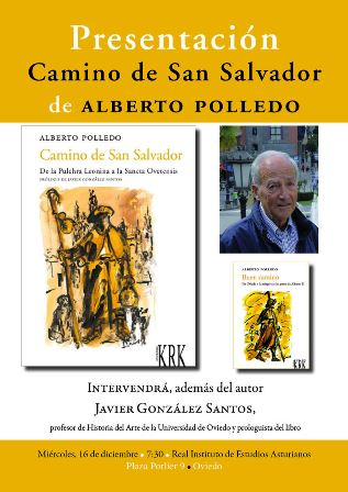 El miércoles 16 de diciembre, a las 19:30 horas, presentación del libro Camino de San Salvador de Alberto Polledo en el Real Instituto de Estudios Asturianos. Además del autor intervendrá Javier González Santos, profesor de la Universidad de Oviedo y prologuista del libro.
