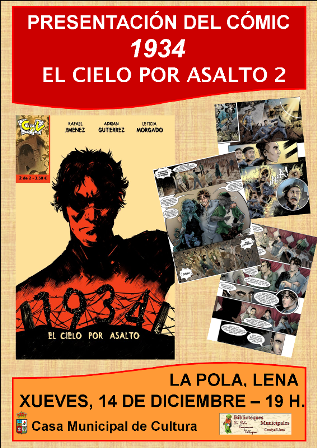 El jueves 14 de diciembre a las 19:00 horas en la Casa Municipal de Cultura de Pola de Lena el dibujante mierense Adrián Gutiérrez presentará la segunda parte de su libro 1934, el cielo por asalto.