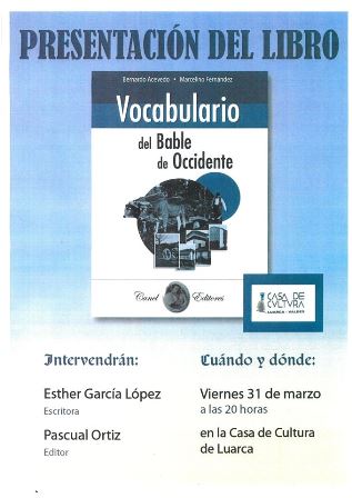 El viernes 31 de marzo, a las 20:00 horas, en el Salón de Actos de la Biblioteca y Casa de Cultura de Luarca tendrá lugar la presentación del libro Vocabulario del bable del occidente (Canel, 2016).