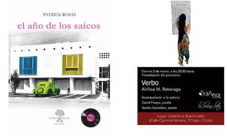 -A las 20:30 estará Ainhoa M. Retenga para presentar su libro Verbo editado por Bajamar ediciones. «Soy una mera condenación saltando al vacío, una convulsión hecha de entrañas, un abismo transmutado, un sustantivo que ya no se sostiene sin lenguaje. Soy solo la nada que me ladra, una definición ambivalente buscando precisión, el acento de unas manos atestadas de conciencia, los extremos de una inercia que descomunal proyecta atraparme.