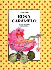 Rosa Caramelofue editado en Milán (Rosaconfetto) dentro de la colección “Dalla parte delle bambine” que entre 1975 y 1980 Adela Turín y la ilustradora de sus primeras obras, Nella Bosnia, editaron para reivindicar los derechos de las niñas. Títulos que son ya clásicos de la literatura infantil no sexista y reivindicativa de los derechos de las mujeres. Además de Rosa Caramelo: Arturo y Clementina, Historia de los bonobos con gafas, Cañones y manzanas, La chaqueta remendada… Muy pronto Esther Tusquets (Lumen) editó en España la colección con el título “A favor de las niñas” convirtiéndola también aquí en una colección de referencia para la coeducación y la igualdad. Escrito en tercera persona, con la estructura de un relato tradicional, utilizando los animales humanizados como recurso para hacer más comprensible el mensaje, es muy útil para ser leído en voz alta a los más pequeños. Las ilustraciones de vivos colores de Nela Bosnia aunque hoy podrían considerarse algo desfasadas acompañan perfectamente el mensaje del texto y nos sirven para ver a esas elefantitas segregadas de sus hermanos,”acicaladas” ridículamente y condenadas a sufrir para estar bellas y apetecibles de mayores. En 2012 la editorial Kalandraka, en su estupenda labor de reedición de clásicos descatalogados, inaugura una colección con el nombre de la escritora y reedita Rosa Caramelo y Arturo y Clementina en gallego, castellano y catalán.