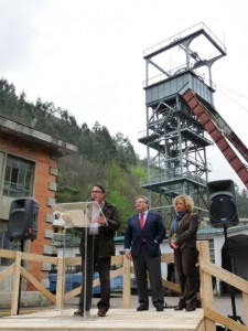 La primera parada de esta ruta se realizó en el Pozo San Nicolás, en Ablaña, donde Argüelles leyó unos pasajes de su novela que guardan relación con esta emblemática mina asturiana: