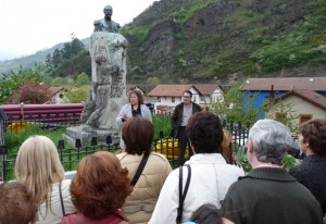 La siguiente parada se llevó a cabo en el poblado minero de Bustiello, donde la lectura elegida retrató el abismo social que separaba a los propietarios de los bellos palacios de los obreros sobre quienes ejercían su autoridad y de los que, en realidad, también se sentían dueños absolutos. No sólo diseñaban sus casas, sus trabajos y hasta su salud, sino también sus vidas: