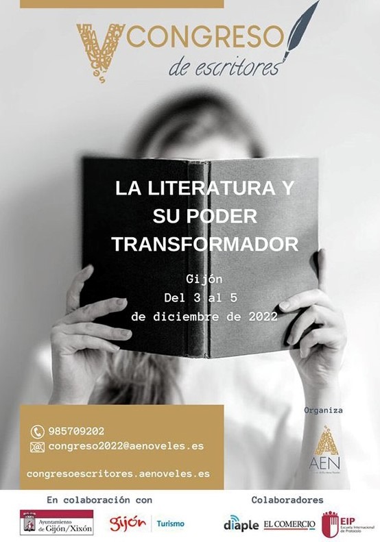 Del al 3 al 5 de diciembre se celebrará en Gijón el V Congreso de Escritores, bajo el lema ‘La literatura y su poder transformador’. Se darán cita nombres del panorama literario y editorial español, como los autores Soledad Puértolas, Gonzalo Moure, Mónica Rodríguez, Pilar Sánchez Vicente o Leticia Sánchez Ruiz; el editor  Cristian Velasco; la periodista Rosa María Calaf o los críticos literarios Anna Caballé o J. L. Martín.