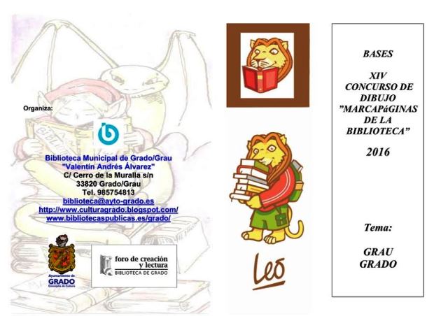 I.- La Biblioteca Municipal de Grado/Grau “Valentín Andrés Álvarez” convoca el XIV Concurso de Dibujo para elegir sus Marcapáginas para el año 2016.